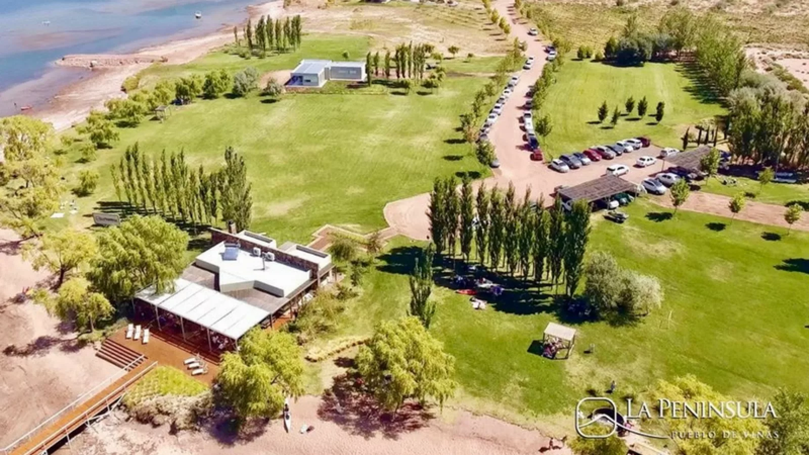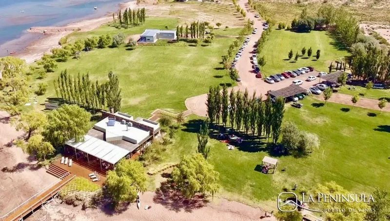 La Península “Pueblo de Viñas” se consolida como desarrollo inmobiliario, concebido sobre una superficie de 475 hectáreas y 8 km de costa de lago, ubicado a sólo 75 km. de la capital neuquina. El atractivo de sus parcelas (superficies desde los 800 a 1.500 m2), es que están ubicadas alrededor del campo de golf, en la costa del lago, entre viñedos, nogales y olivos.