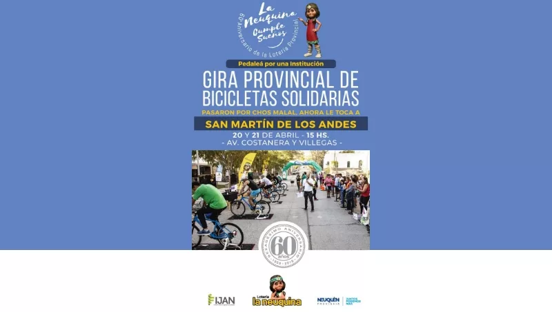 Las bicicletas de “La Neuquina Cumple Sueños” estarán el 27 y 28 de ese mes en Zapala, y el cierre del programa está anunciado que se realice el 11 y 12 de mayo en la ciudad de Neuquén.