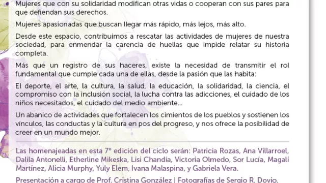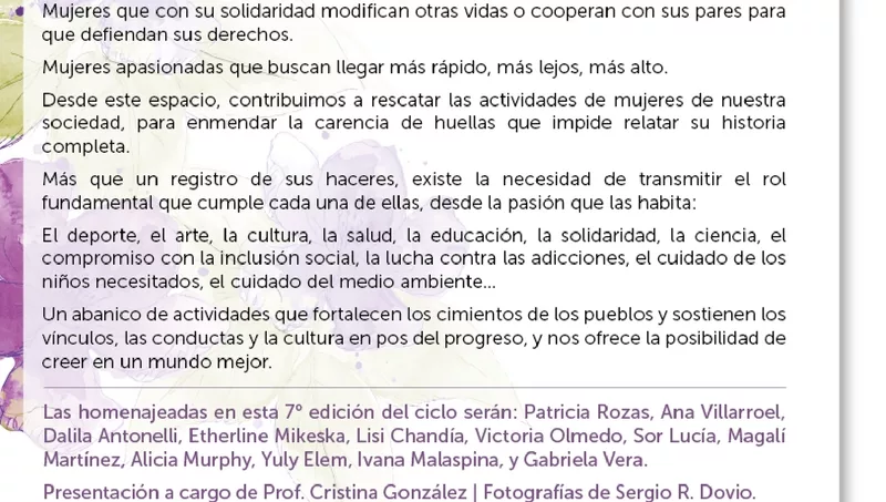 Durante los últimos años, el homenaje ha distinguido a más de 100 mujeres, un espacio y un registro de sus haceres, la necesidad de transmitir el rol fundamental que cumple cada una de ellas, desde la pasión que las habita.