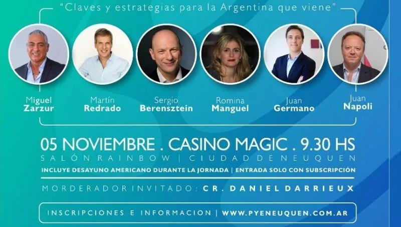 Entre los oradores principales del evento estarán Miguel Zarzur, presidente de Bacs SA. Presentador del evento., Martín Redrado, director general de Fundación Capital, y Sergio Berensztein, presidente de Berenstein.