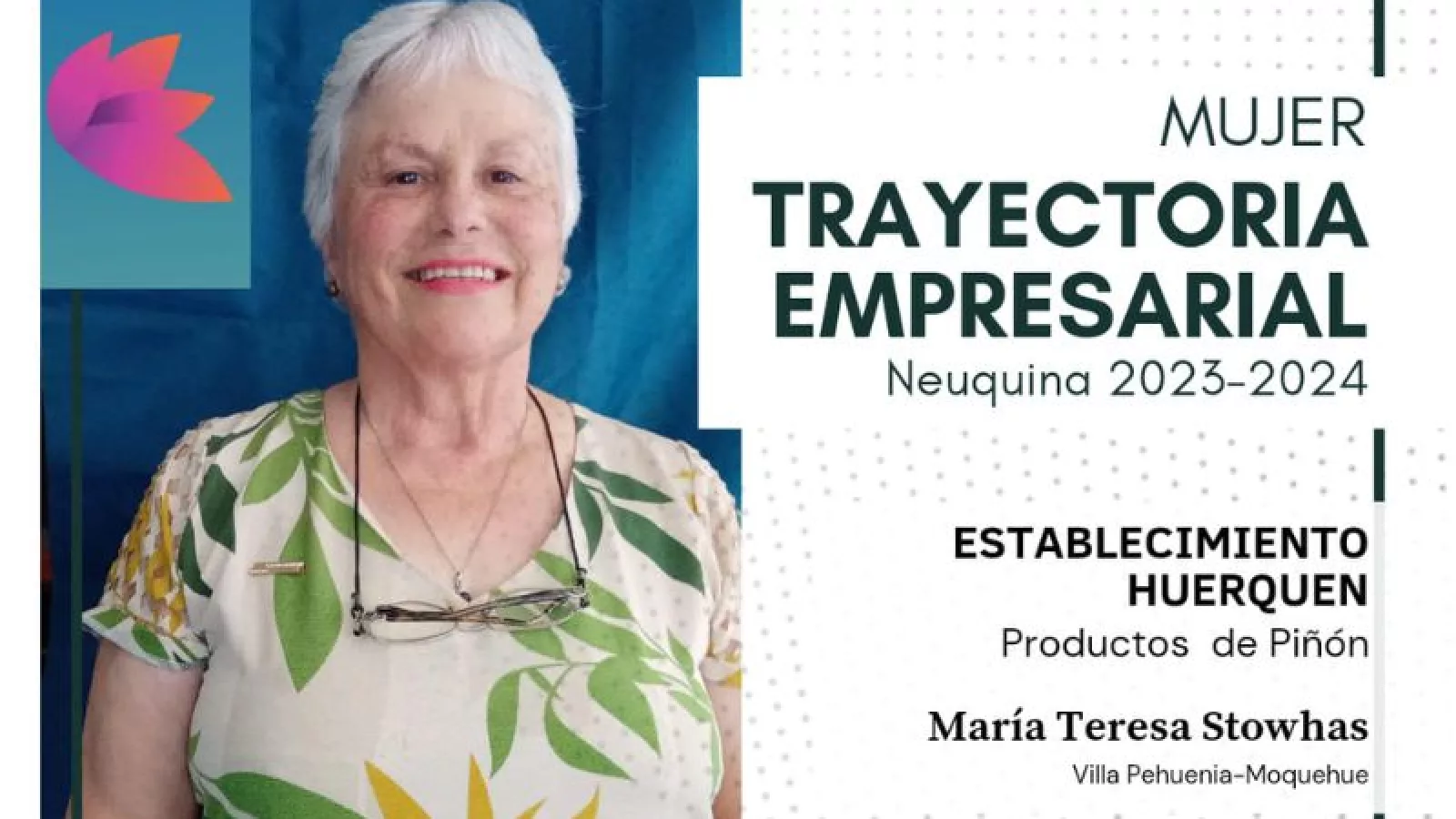 Las tres mujeres distinguidas de la provincia de Neuquén fueron Cinthia Zapata, en la categoría de Innovación Digital, representante de la Cámara de Comercio, Industria, Servicio, Producción y Turismo de Cutral Có-Plaza Huincul; Glenda Hansson, en Inspiración Empresarial/Emprendedora, representante de la Cámara de Comercio, Industria y Afines de Rincón de los Sauces; y María Teresa Stowhas, en Trayectoria Empresarial, representante de la Cámara Turismo, Industria, Comercio y Servicio de Villa Pehuenia-Moquehue.