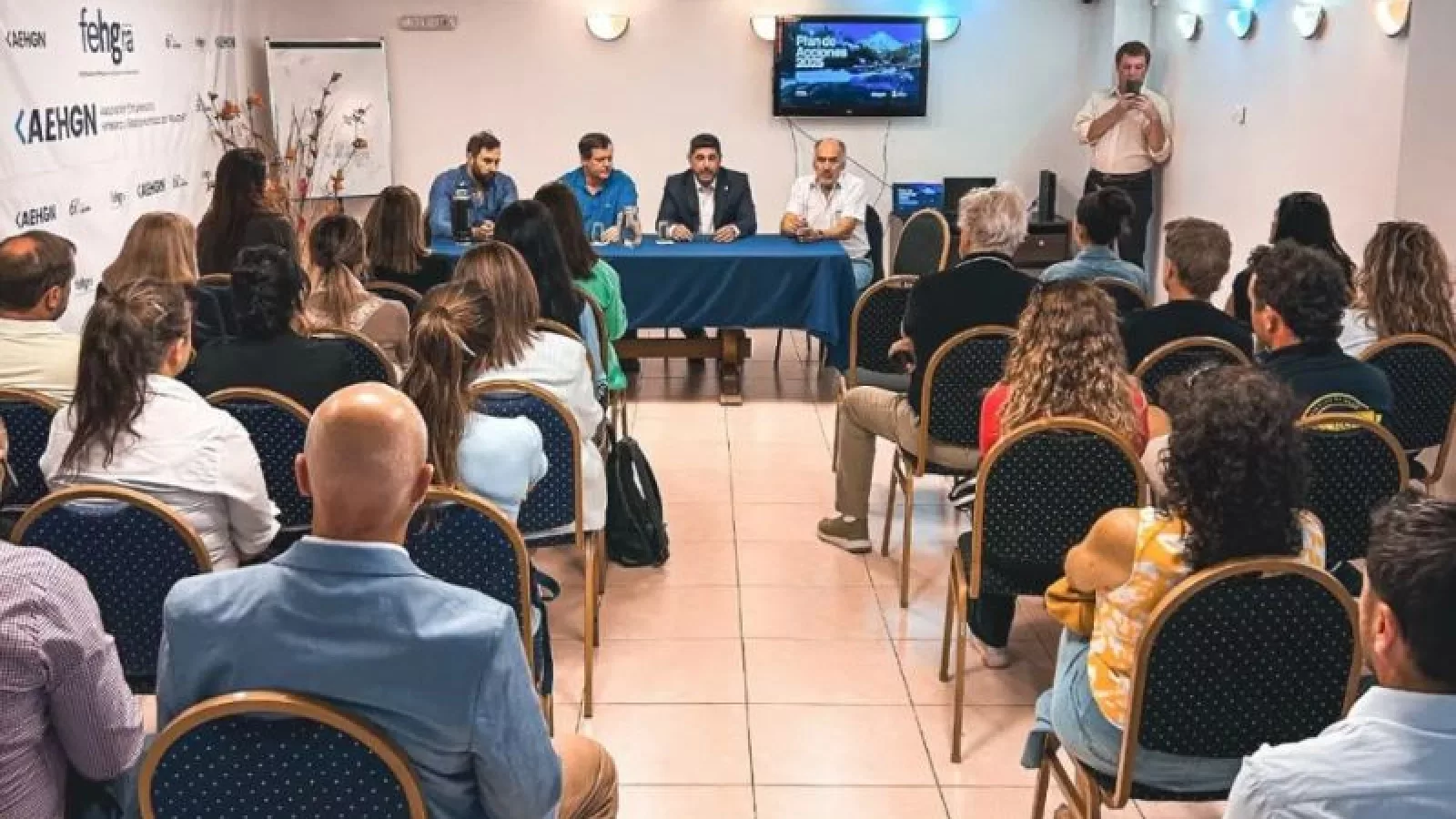 Entre los asistentes al encuentro se encontraban representantes del Ministerio de Turismo de la provincia, el secretario de Turismo y Desarrollo Social de la Municipalidad de Neuquén, Diego Cayol, y referentes del sector privado, como el presidente de la Asociación Empresaria Hotelera y Gastronómica de Neuquén, Joaquín González.