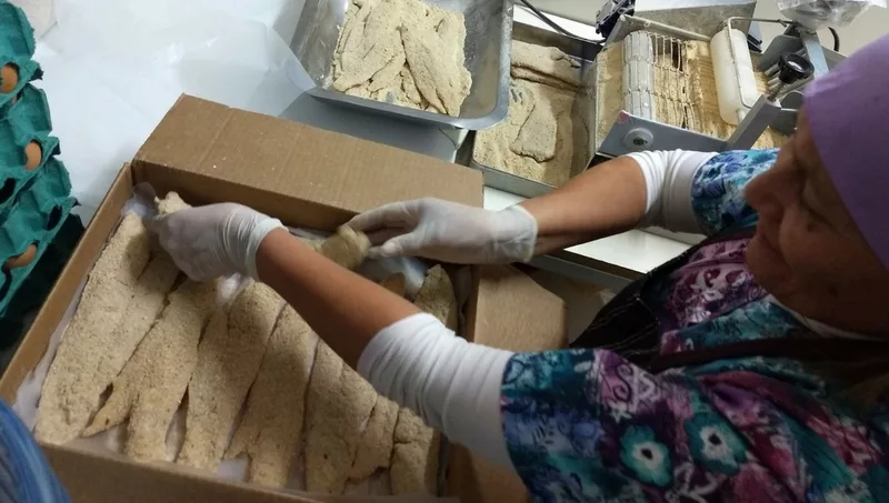 La fábrica tiene sello bromatológico y les permite producir unos 24 kilos diarios de milanesas de merluza, “nos ayudamos con las redes sociales para que conozcan el proceso de elaboración, subimos videos y recetas, creo que este es un camino que recién comienza” marca Noguera en el final de la nota.