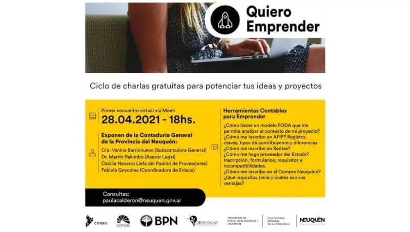 Desde COPADE Neuquén impulsan un nuevo ciclo de charlas gratuitas destinado a emprendedores o personas que estén interesadas en emprender. El primer encuentro se llevará a cabo el próximo miércoles 28 de abril a las 18 a través de la aplicación Meet.