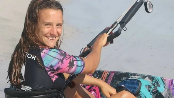 Ella es de Mar del Plata y a nivel mundial su participación es reconocida, aquí estuvo en la isla Menéndez donde mostró su habilidad en esta disciplina que consiste en el uso de un kite de tracción que tira del deportista permitiendo deslizarse sobre el agua mediante una tabla o un esquí del tipo wakeboard.