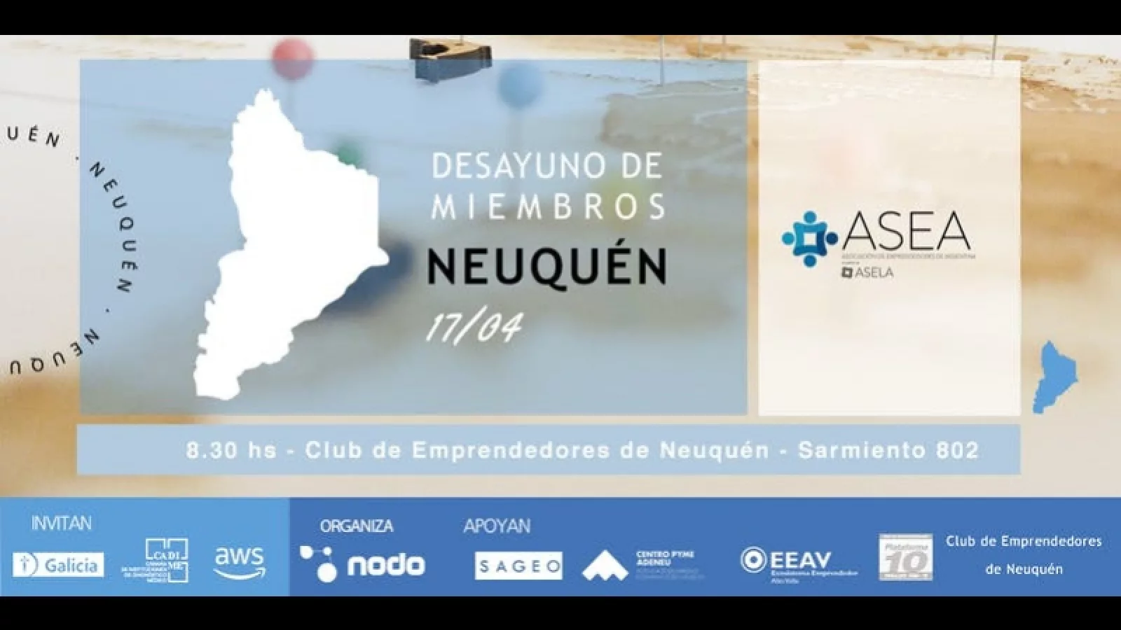El desayuno está pautado para este miércoles 17 de abril a partir de las 8,30 horas, en el Club de Emprendedores de Neuquén, con sede en Sarmiento 802.