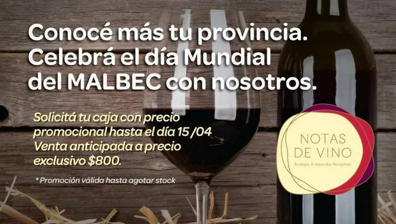 Hasta el domingo 15 de abril podés reservar tu caja de vinos malbec, elaborados por los vitivinicultores neuquinos que conforman la marca "Notas de Vino". Podés encargar tu caja al correo electrónico o bien al (0299) 448-5553.