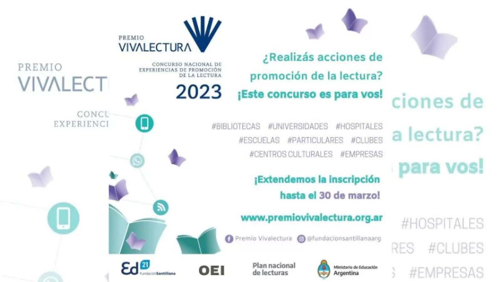 La participación en el concurso es gratuita y está abierta hasta el 30 de marzo de 2023 ingresando en www.premiovivalectura.org.ar. Se admiten proyectos de todas las provincias argentinas. Pueden inscribirse experiencias de lectura en escuelas, bibliotecas, institutos de formación docente, universidades, centros culturales, hospitales, ONG, empresas y particulares bajo las siguientes categorías: