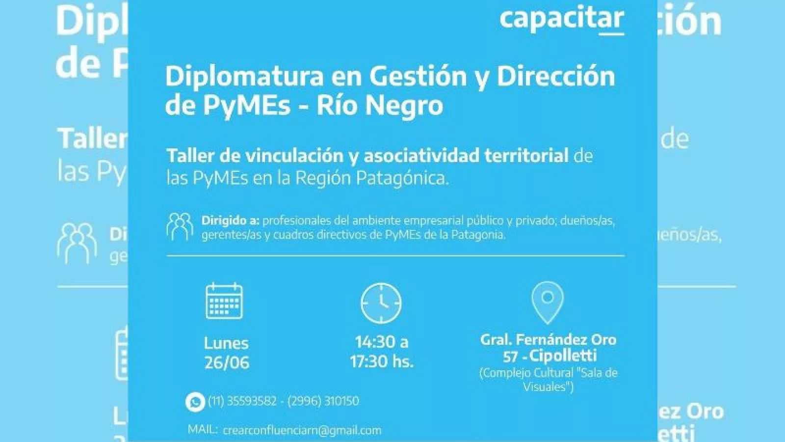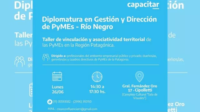 Los interesados en participar pueden confirmar su inscripción a través del siguiente enlace: https://lnkd.in/d5ASTGuu. Para cualquier consulta adicional, se pueden comunicar con la Agencia Cipolletti a través de los siguientes medios: WhatsApp: Agencia Cipolletti +54 9 2996 31-0150 y correo electrónico: [email protected].