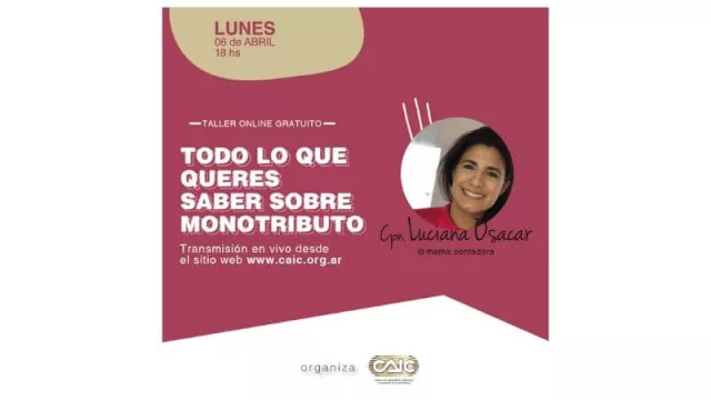 Esta una nueva transmisión en vivo, en este caso para aprender sobre “Monotributo”. La capacitación online se realizará a través del sitio web de CAIC (ver acá), es este lunes a partir de las 18:00 horas.