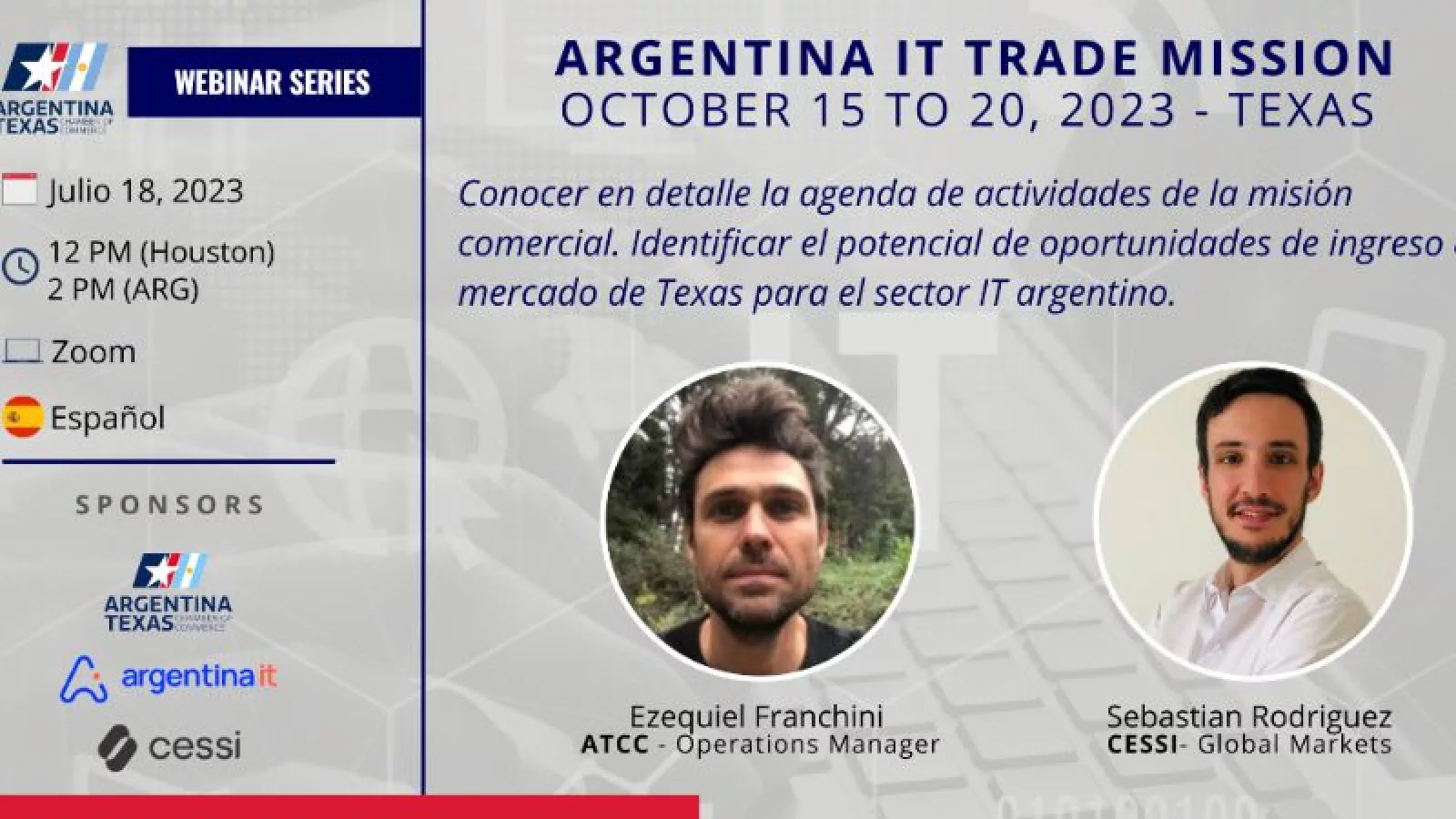 La Misión Comercial de IT Argentina en Texas está a la vuelta de la esquina y este webinar es la puerta de entrada para aquellos que buscan aprovechar al máximo esta oportunidad única. ¡No pierdas la oportunidad de participar en este evento que promete abrir nuevas puertas y expandir tus horizontes empresariales en el mercado texano!