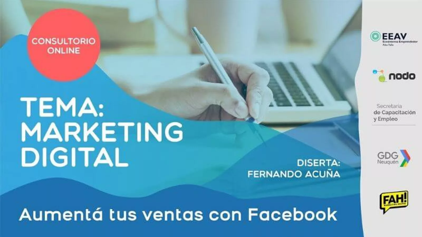 Además acompañan la Secretaría de Capacitación y Empleo de la Municipalidad de Neuquén Capital, la consultora NODO, el grupo GDG Neuquén (Desarrolladores de Google) y Fernando Acuña de FAH Marketing.